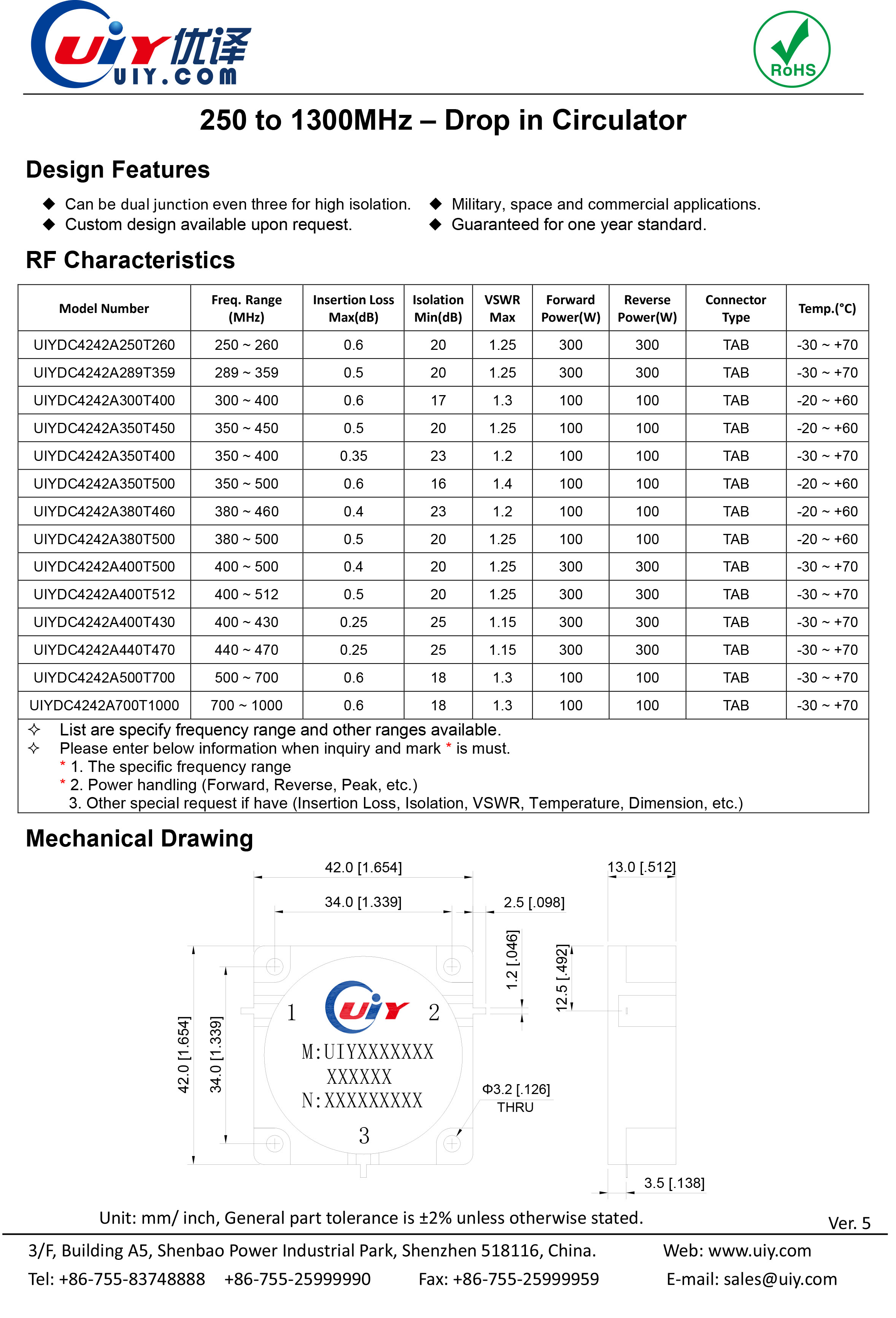 If you have any parameter questions about frequency, power, insertion loss etc, pls feel free to contact us directly.