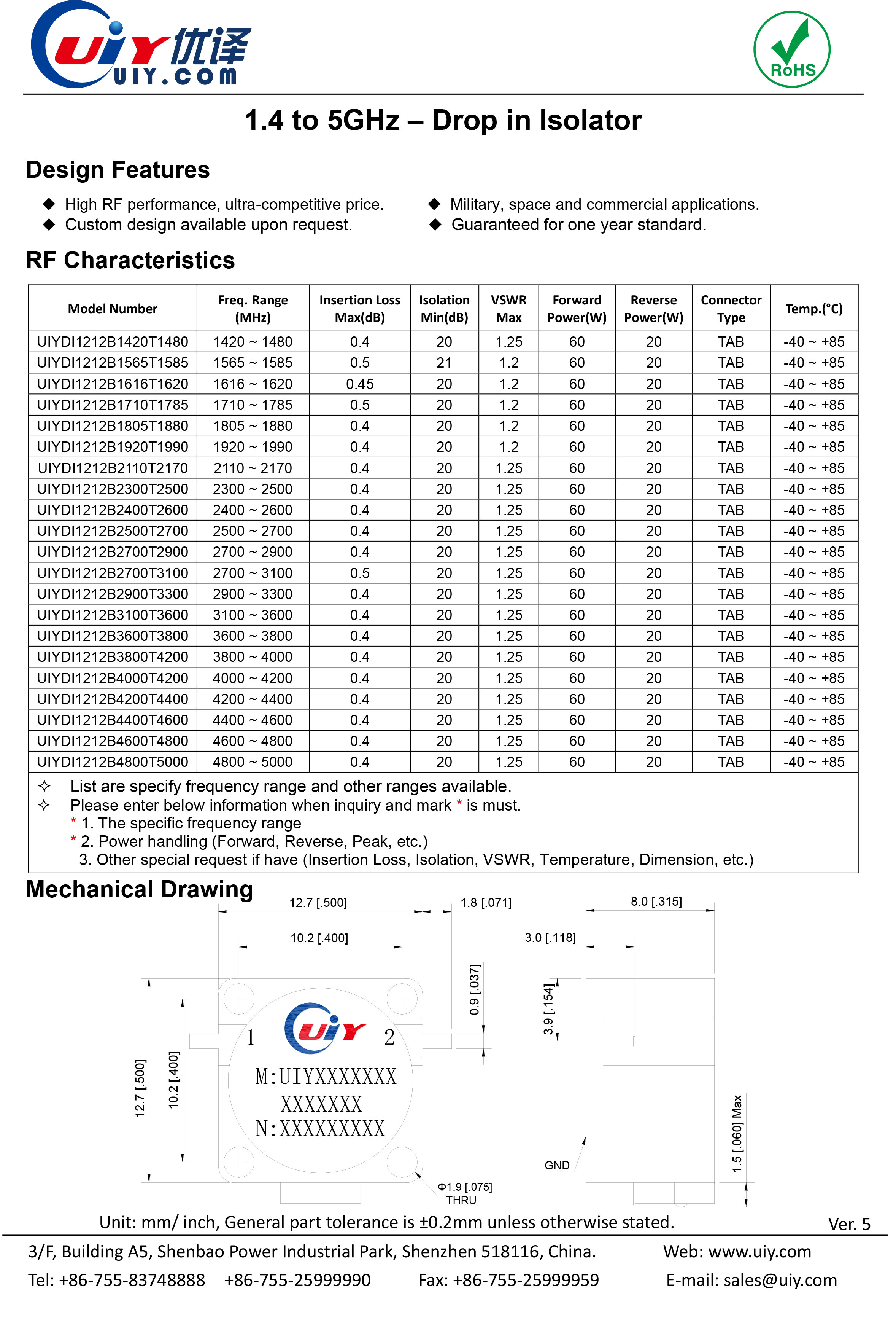 - 嵌入式(带线)隔离器 UIYDI1212B