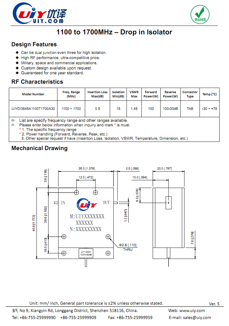 - 带线隔离器 UIYDI3545A1100T1700A30