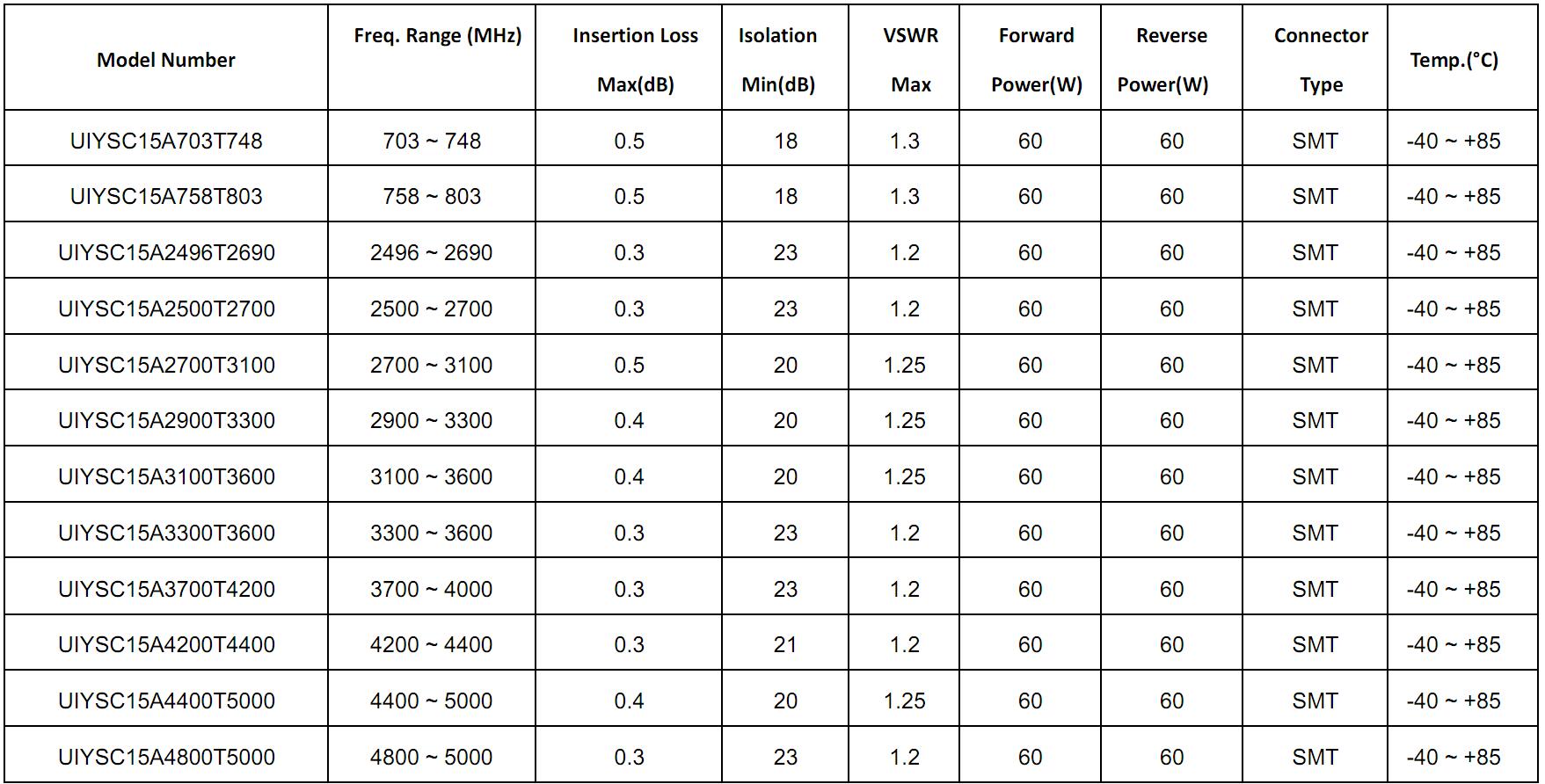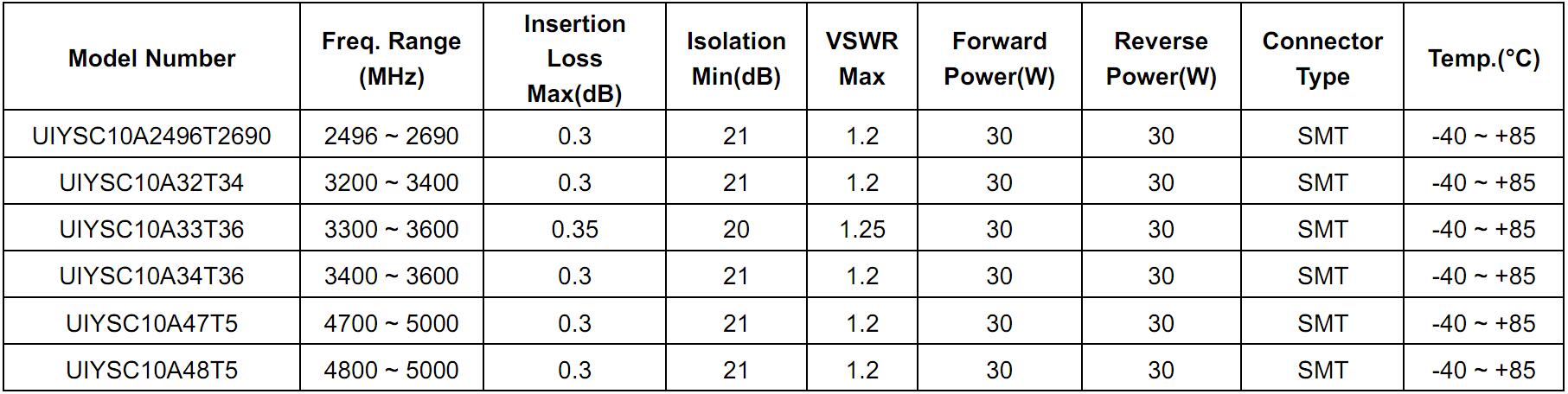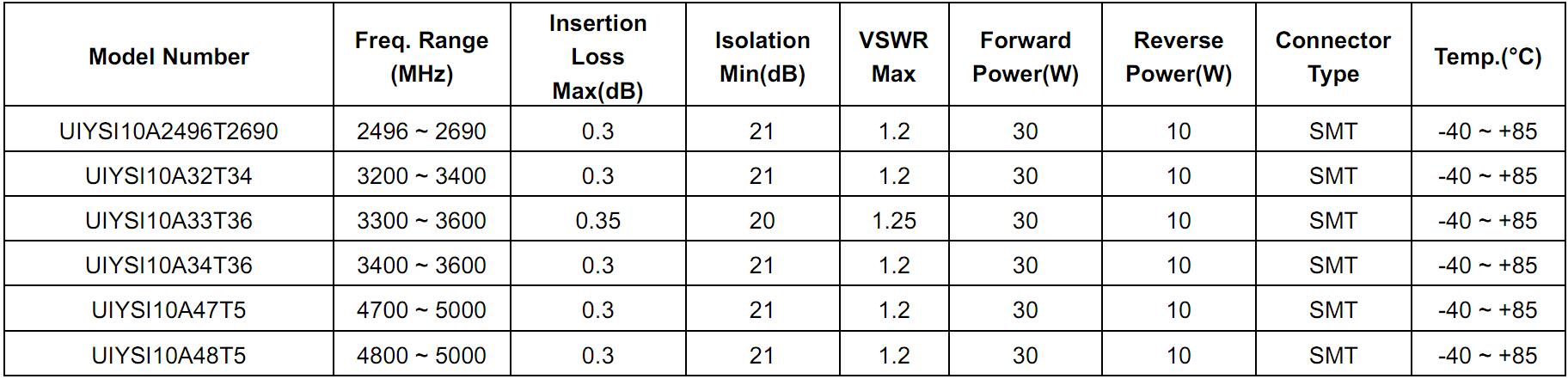 新一代信息技术革命浪潮中,5G 是真正实现万物互联的基础性技术。优译助力5G技术,提供常用的5G频段703-748MHz,758-803MHz,2496-2690MHz,3300-3600MHz,4400-5000MHz中的射频环形器/隔离器/带通滤波器/双工器!