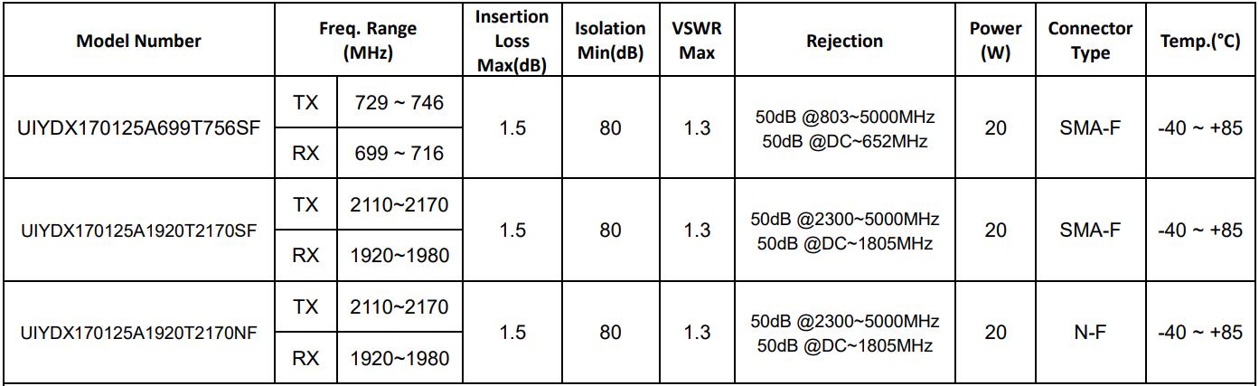 由于产品较多,如有未列出的或涉及到产品频率、指标参数、功率、接头形式等方面疑问,请致电或者细询在线客服。